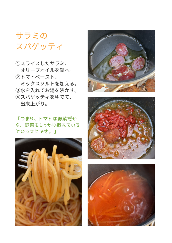 ザックを下ろし、折れないように大事に運んできたスパゲッティを取り出した。